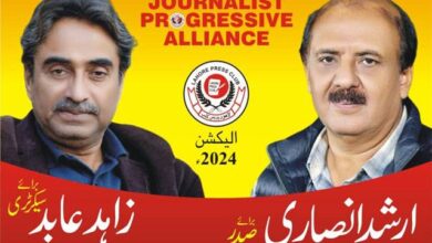 لاہور پریس کلب کے انتخابات میں پروگریسو جرنلسٹ الائنس کے صدر کے امیدوار ارشد انصاری اور سیکرٹری زاہد عابد کامیاب…