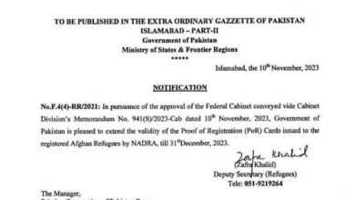 کل سے ملک بھر میں چیک پوسٹوں ۔۔بازاروں ۔شہروں میں غیر قانونی غیر ملکی افراد کے خلاف کارواٸیاں شروع ہو…