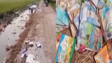 سندھ ٹیکسٹ بک بورڈ سے ملنے والی مفت درسی کتب طالبعلموں میں تقسیم کرنے کے بجائے سیم نالے کے گندے…