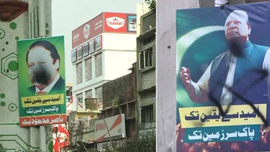مسلم لیگ ن کے قائد نواز شریف کے استقبالیہ پوسٹرز پر کالا اسپرے کردیا گیا اور متعدد پوسٹرز پھاڑ دیے…