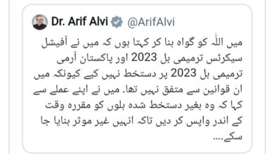 وزارت قانون و انصاف نے صدر مملکت عارف علوی کی جانب سے آفیشل سیکرٹ ایکٹ اور آرمی ایکٹ ترمیمی بل…