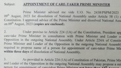 صدر مملکت 12 اگست تک نگران وزیرِاعظم کا نام دینے کے لیے خط لکھ دیا