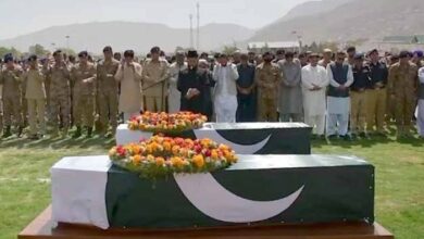 بلوچستان میں ہیلی کاپٹر حادثے میں شہید ہونے والے میجر طلحہ منان، میجر سعید اور نائیک مدثر فیاض کی نماز…